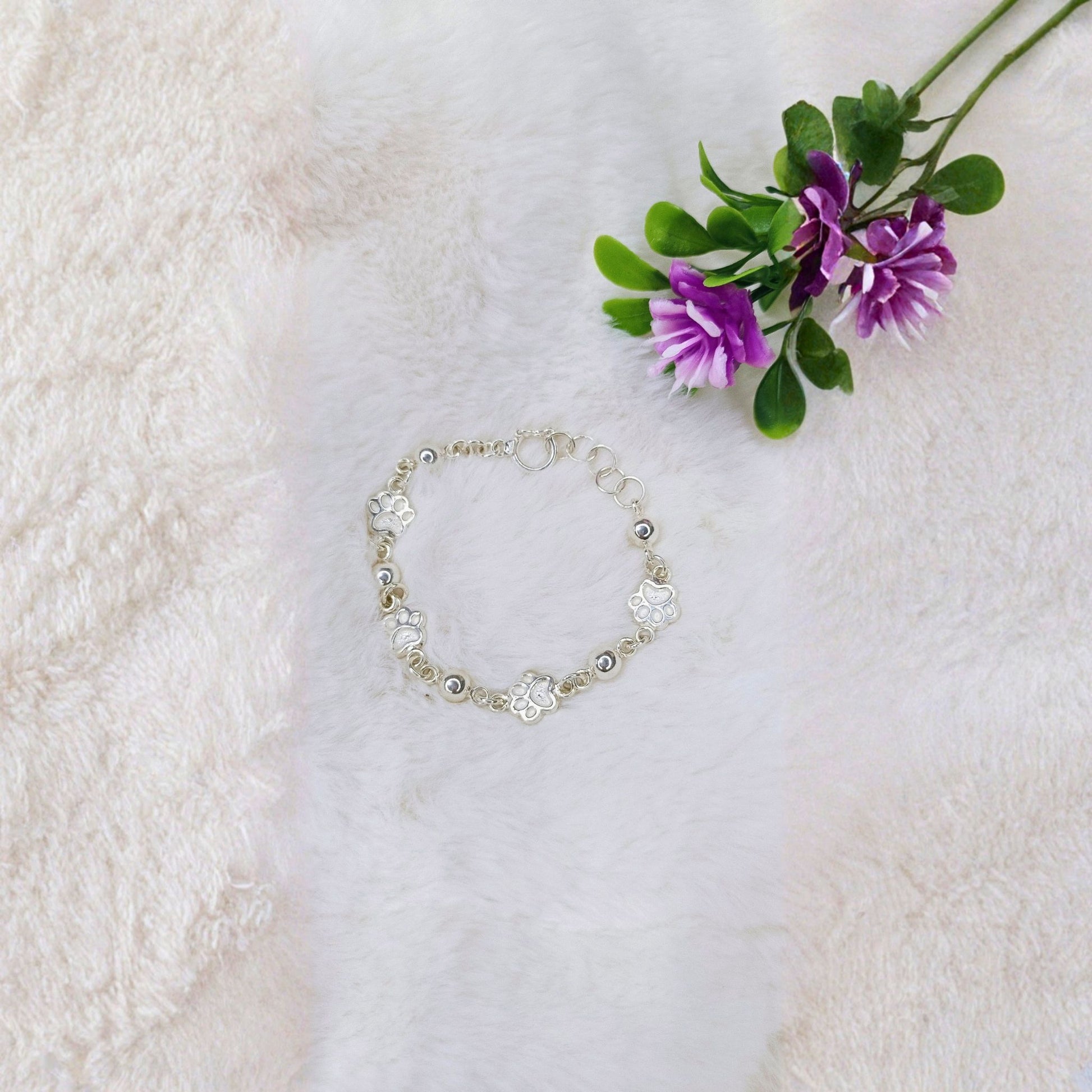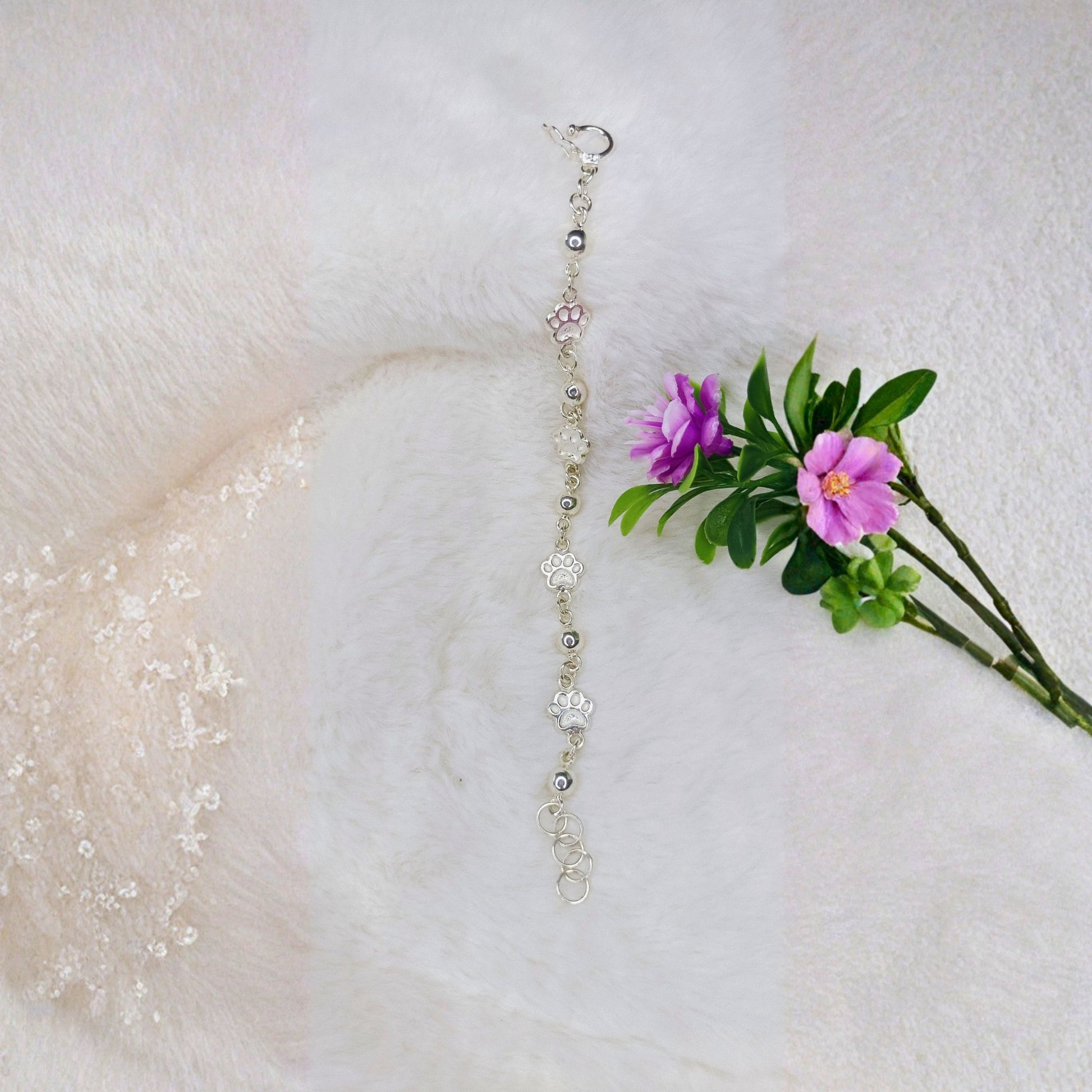 Lleva el amor de tu mascota contigo a donde vayas. Esta delicada pulsera en plata combina huellas de patitas con esferas brillantes, creando un diseño lleno de significado. Cada patita representa ese amor incondicional que solo nuestras mascotas saben dar. Cadena ajustable y cómoda. Hipoalergénica. Para quienes saben que las mascotas dejan huellas eternas en nuestros corazones. El regalo perfecto para cualquier amante de los animales.