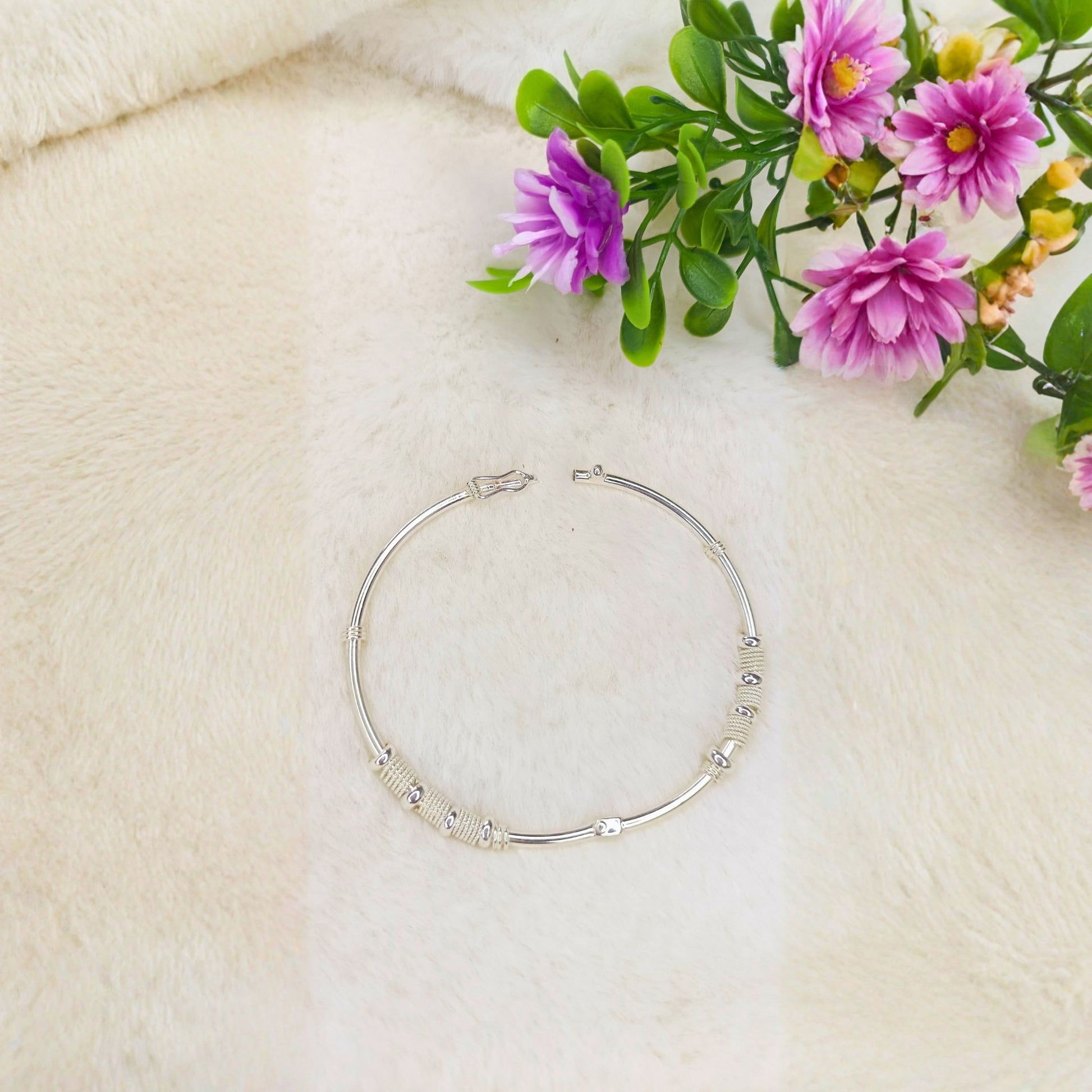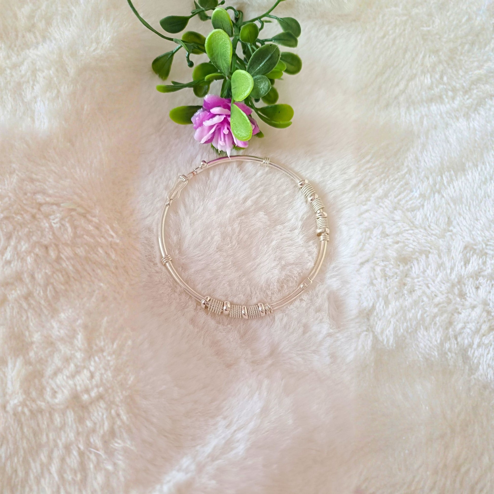 Elegancia en su forma más pura. Este brazalete bangle combina la simplicidad del diseño minimalista con la sofisticación de texturas en espiral cuidadosamente trabajadas. Cada detalle texturizado contrasta perfectamente con las secciones pulidas, creando un juego visual sutil pero impactante. Hipoalergénico. Una pieza atemporal que nunca pasa de moda. Para quienes aprecian la belleza en los detalles.